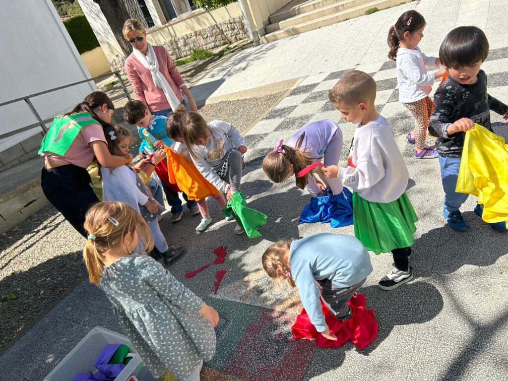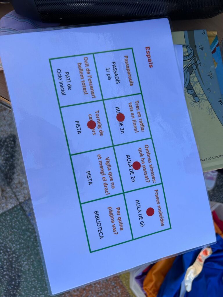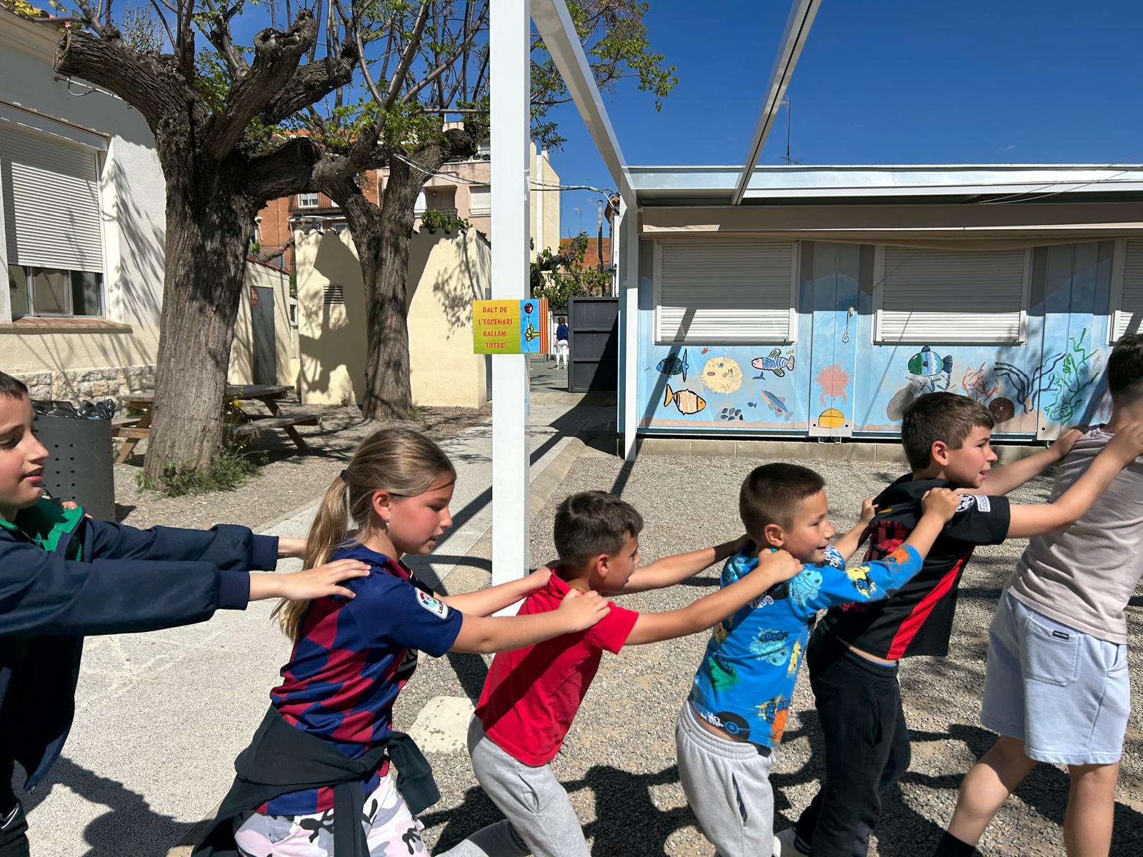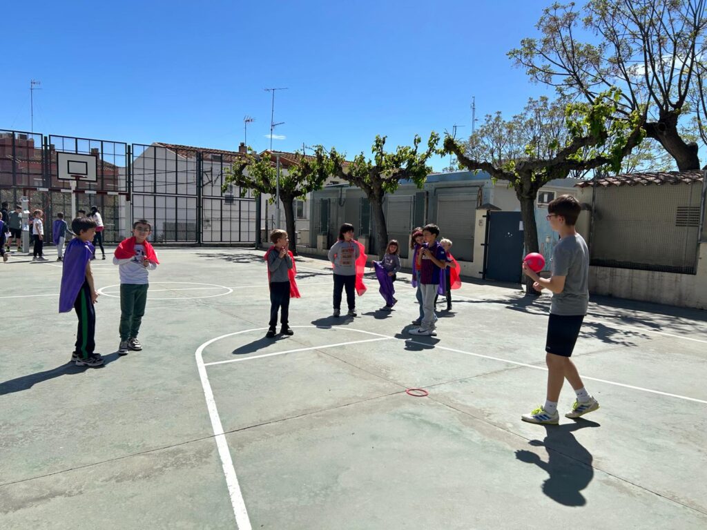 Les nenes i nens de 6è, gaudint d’aquest últim curs i fent-nos passar una tarda especial, van ser uns amfitrions inoblidables; i, els seus companys de 5è, entrenant-se per l’any vinent, van dirigir els grups participants de la gimcana de Sant Jordi 2025 que vam fer jugant pels racons del nostre centre.
