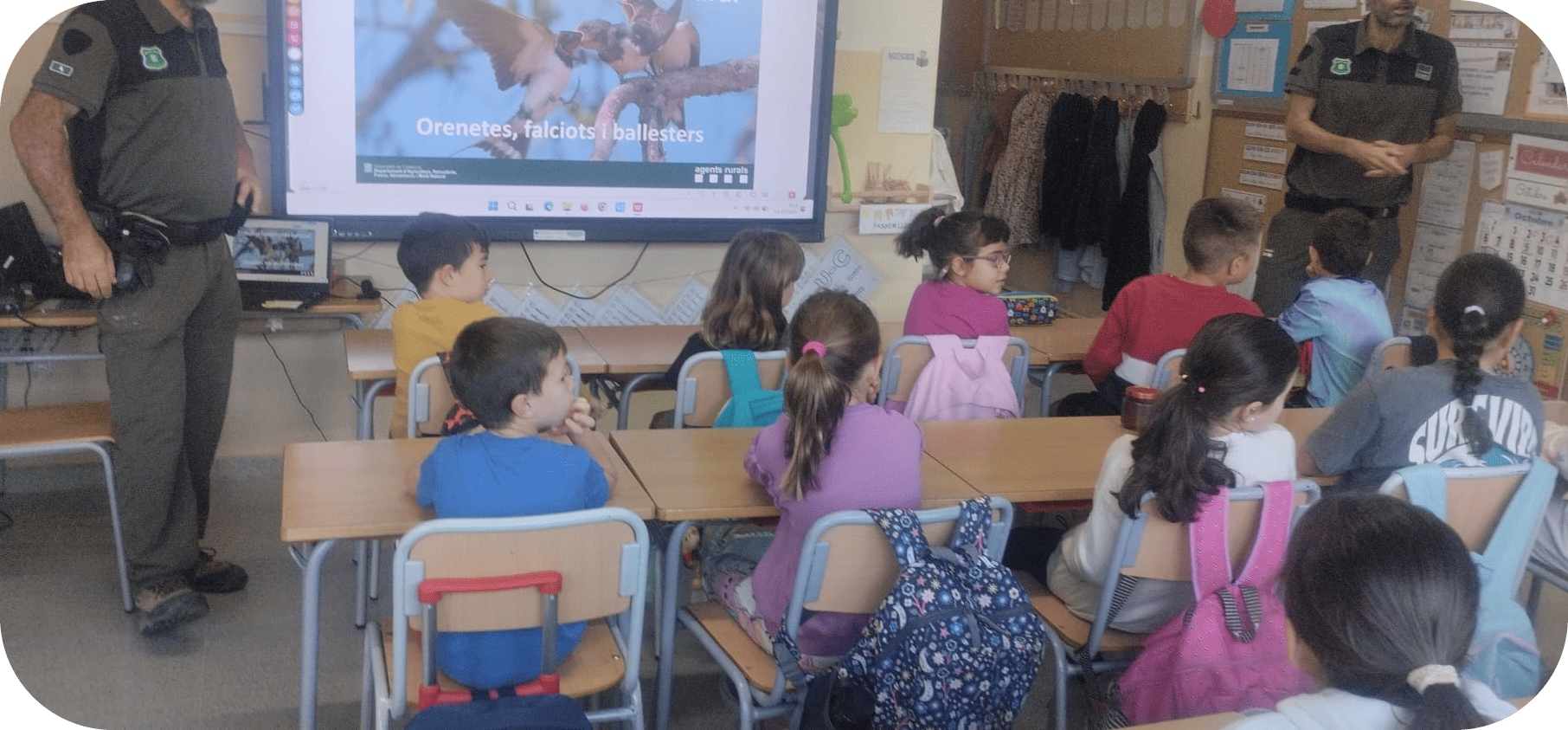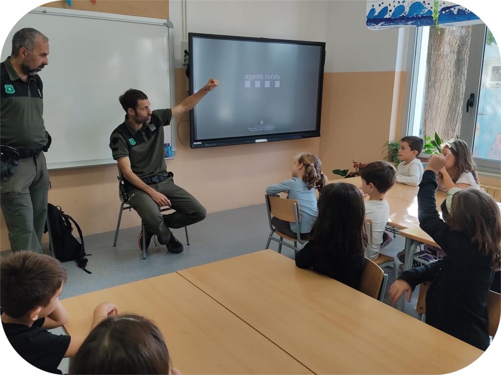 El passat dimarts 14 d’octubre vam tenir una visita molt especial : “Els Agents Rurals”. Vivim en un entorn molt privilegiat on estem envoltats de natura, i és que la nostra flora i fauna són un element indispensables a les nostres vides, que hem de saber conèixer i tenir-ne cura. Per tot això, agraïm que els nostres agents ambientals ens puguin transmetre i ensenyar tot allò que cal saber, investigar i aprendre per ajudar a cuidar el nostre ecosistema i viure en un entorn sostenible. Ens han explicat moltes coses : els animals del nostre entorn, les orenetes i altres ocells migratoris i “els pirates d’aigua dolça”(animals invasors). Moltes gràcies per transmetre’ns la vostra saviesa i ajudar-nos a tenir consciència de la importància d’actuar amb seny davant de les adversitats i/o situacions mediambientals del nostre entorn.