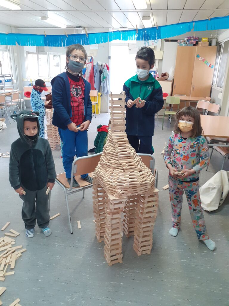 El passat divendres 25 de febrer els nens/es de la classe de primer hem pogut gaudir d’un taller de construcció gràcies a la col·laboració de l’AMPA. Un joc on es treballa l’equilibri , la concentració, el treball en equip, la motricitat fina, la imaginació i la creativitat. Es tracta d’una proposta activa amb multitud de petits taulons de fusta que posen a prova l’enginy per tal d’organitzar els elements en tres dimensions.