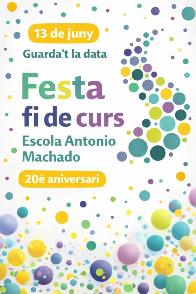 🎉 Guarda la data! 🎉 Aquest any celebrem 20 anys d’història a l’Escola Antonio Machado, i ho volem compartir amb totes les persones que n’heu format part. 💛 Al llarg d’aquests anys hem crescut, hem après i hem viscut moments inoblidables junts. Per això, el 13 de juny celebrarem la nostra Festa de fi de […]