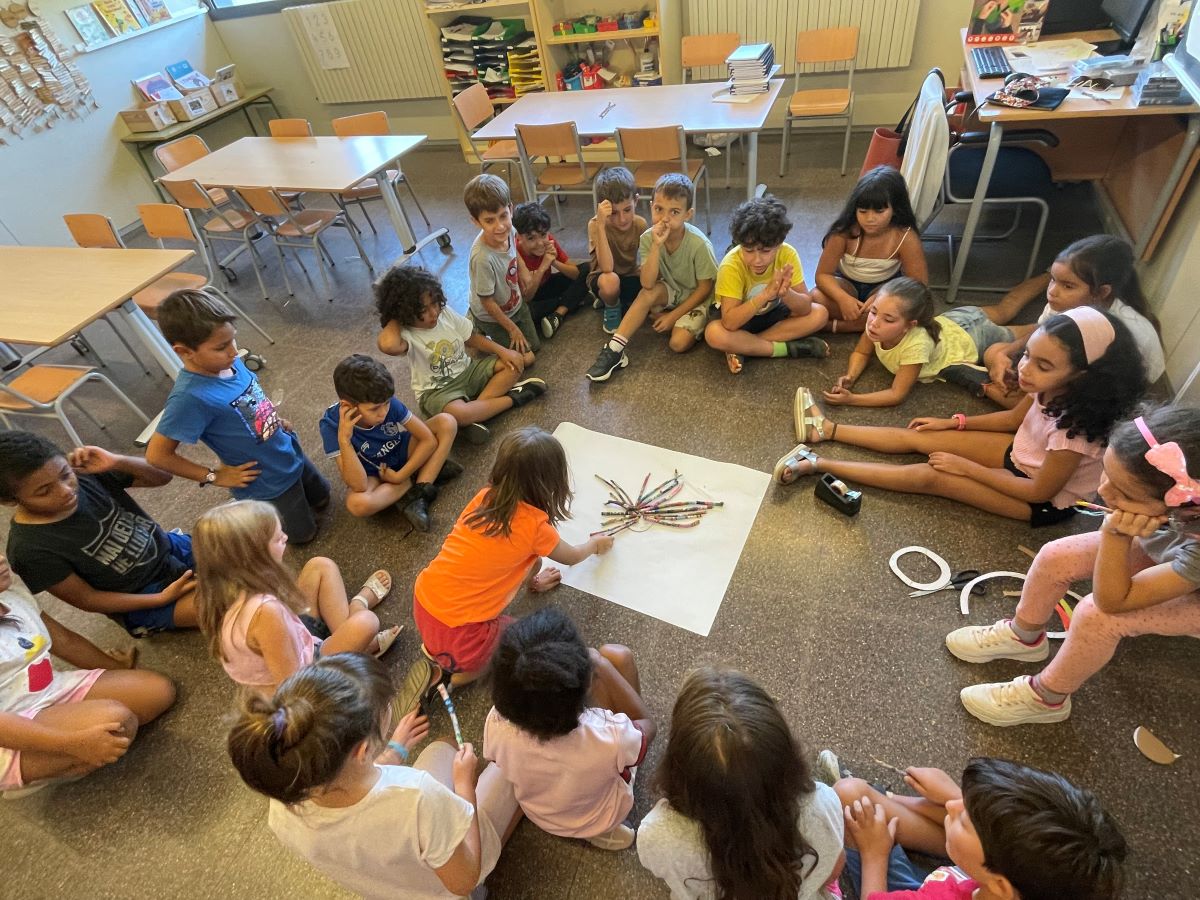 Som la classe de 2nB, en aquesta foto veureu que hem creat una rotllana de pals on cadascú ha pintat el seu pal com ha volgut. I cada pal d’aquests som nosaltres. Hem creat això per representar que som un GRUP!