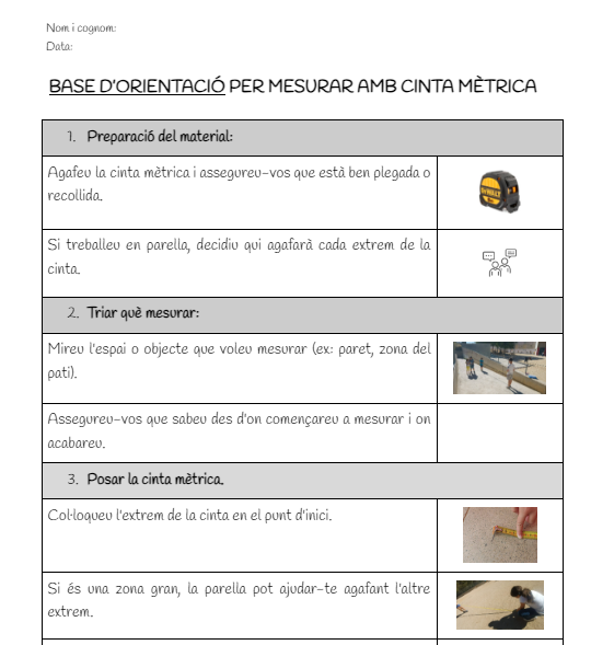 Estem elaborant una base d’orientació per mesurar amb cintes mètriques.
