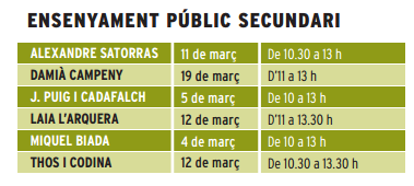 Així mateix, per les famílies que teniu alumnes a 6è, també teniu les diferents dates per poder anar a visitar els diferents instituts públics que tenim a Mataró.