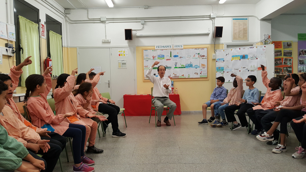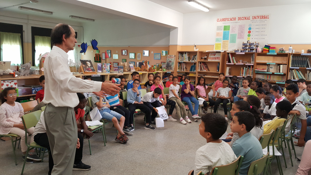 El dilluns 3 de juny, ens va visitar l’escriptor Ricard Bonmatí. Els nens i les nenes de 2n i de 4t feia dies que preparaven aquesta entranyable trobada literària. S’havien llegit els poemes del llibre “Estimades feres” i els alumnes de 4t, a més, es van preparar el llibre de teatre “Pizza tres Alícies (No perdem el cap)”. Els nostres alumnes van estar encantats de conèixer l’escriptor dels llibres que s’havien llegit i el Ricard també va estar molt content. Va ser una trobada molt amena i participativa. Moltes gràcies Ricard Bonmatí!!!