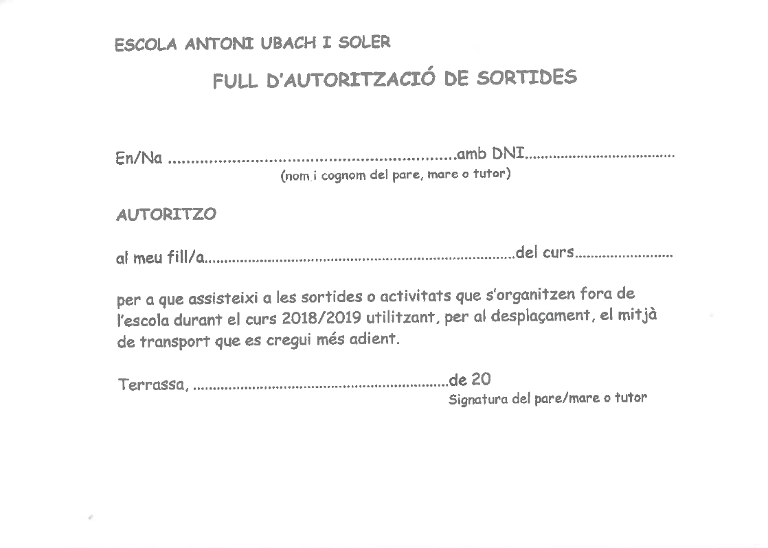 Tots els documents s’han d’entregar degudament emplenats i signats pel pare/mare o tutor/a.
