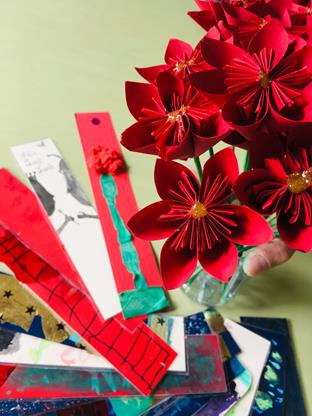 I com no podia ser d’una altra manera, hem explicat la llegenda, hem fet punts de llibres i roses, unes roses precioses que ens ha ensenyat a fer l’Abril.
