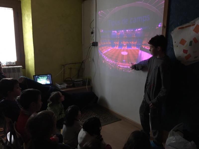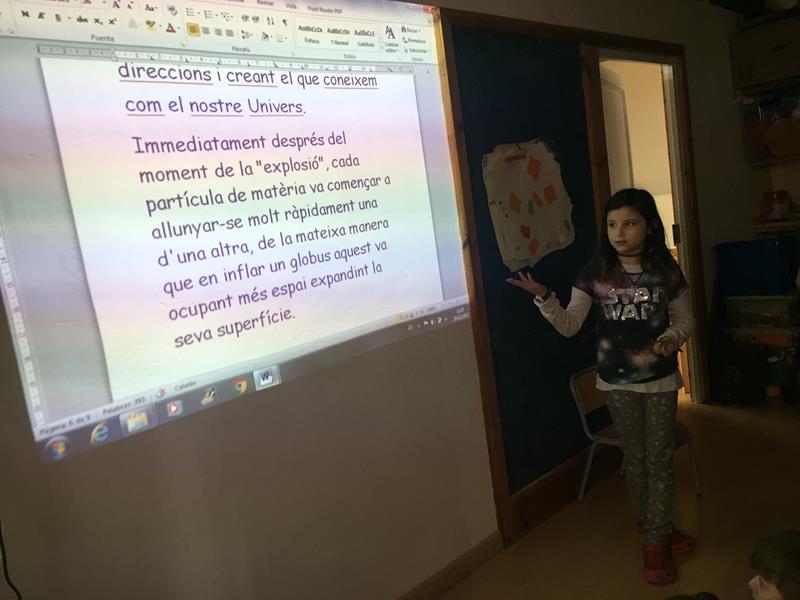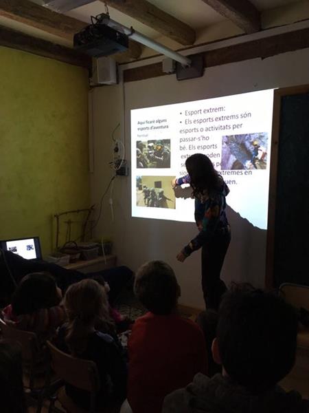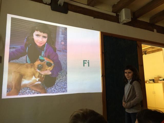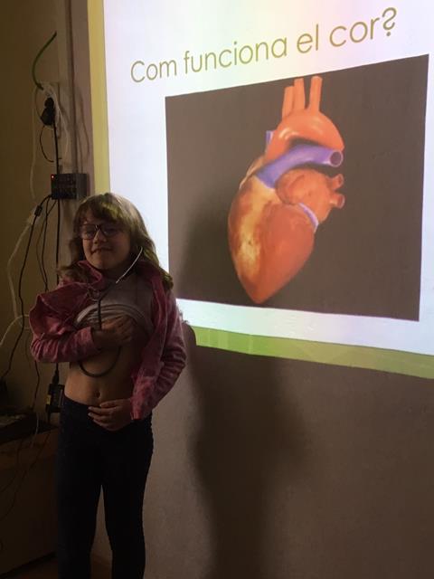 L’Àngela ens fa fer la conferència del cos humà: de les similituds i les diferències entre els nens i les nenes.