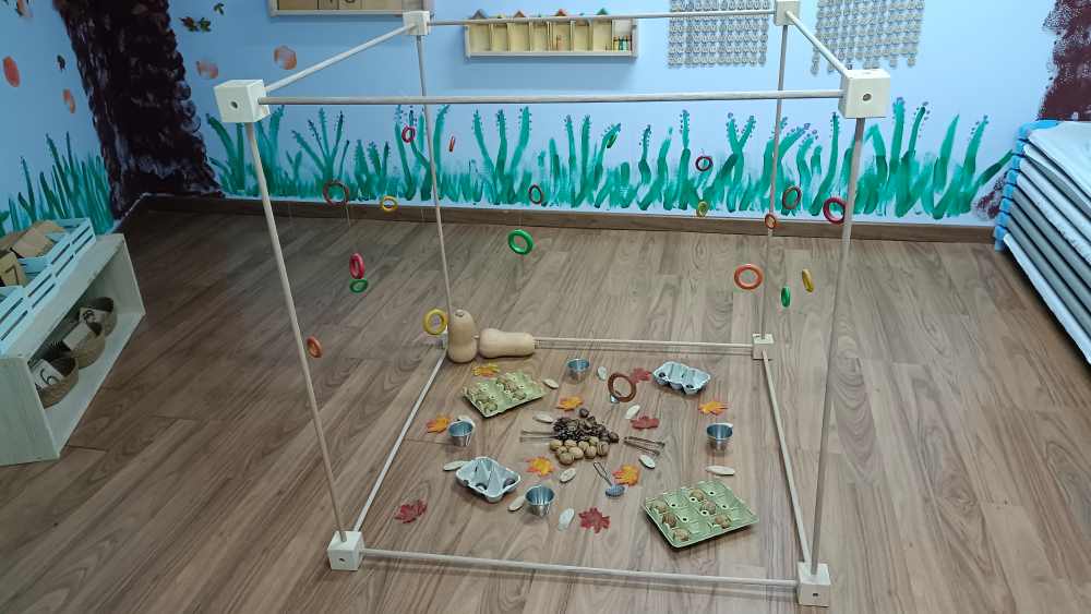 A través d’elements naturals com les pinyes, nous, castanyes, i altres, hem creat un espai sensorial que ha despertat la curiositat i creativitat dels més petits.