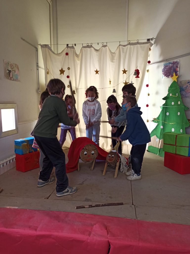 Aquest matí hem fet cagar el tió, i per més que hem picat només ens ha cagat una nota dient que els Minairons no havien pogut arribar a temps a deixar els regalets, i que, si els volíem, havíem d’anar a buscar als Minairons al bosc del Pla.
