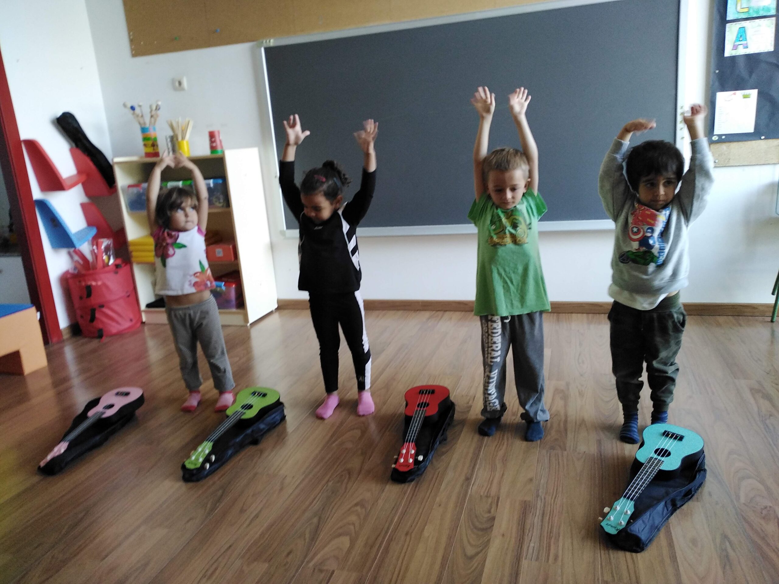 Els més petits de l’escola han començat les sessions de música i moviment. Sembla que aquests petits músics s’ho passen d’allò més bé tocant instruments, ballant i fent activitats de moviment. Fins i tot han volgut provar com sonen els ukeleles dels més grans!
