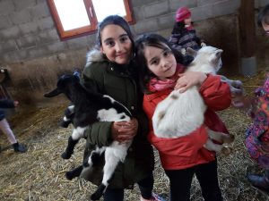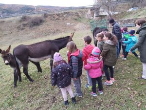 Avui els alumnes d’infantil, 1r, 2n i 3r hem visitat la granja de Cal Meya. Primer hem anat a veure al Romeo, la Julieta i l’Estrella, els tres rucs de la granja. Hem pogut comprovar que són mamífers perquè hem vist com l’Estrella s’alimentava de la llet de la seva mare. Després hem vist galls, gallines, ovelles, cabres i un cabridet acabat de néixer.