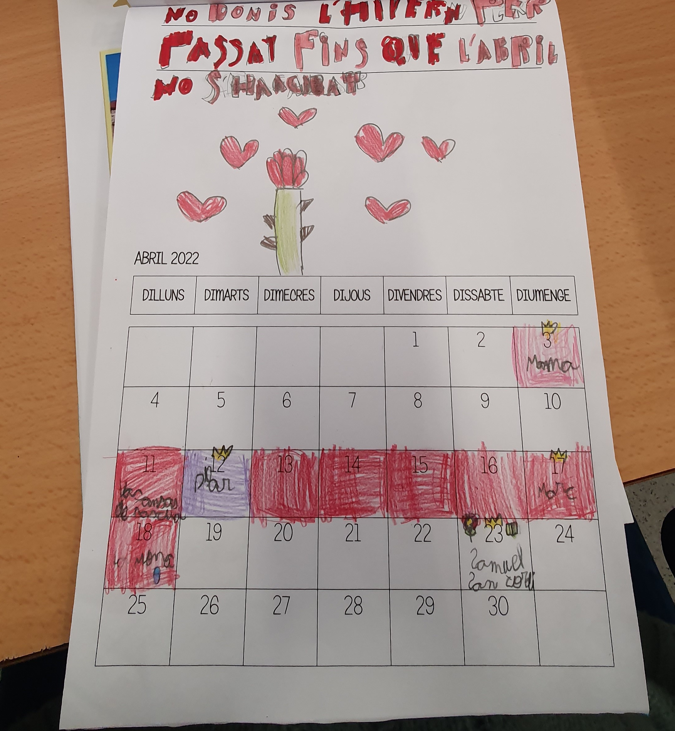 També hem apuntat moltes més coses com els aniversaris dels nostres familiars, dia que comença cada estació, les festes i les vacances …