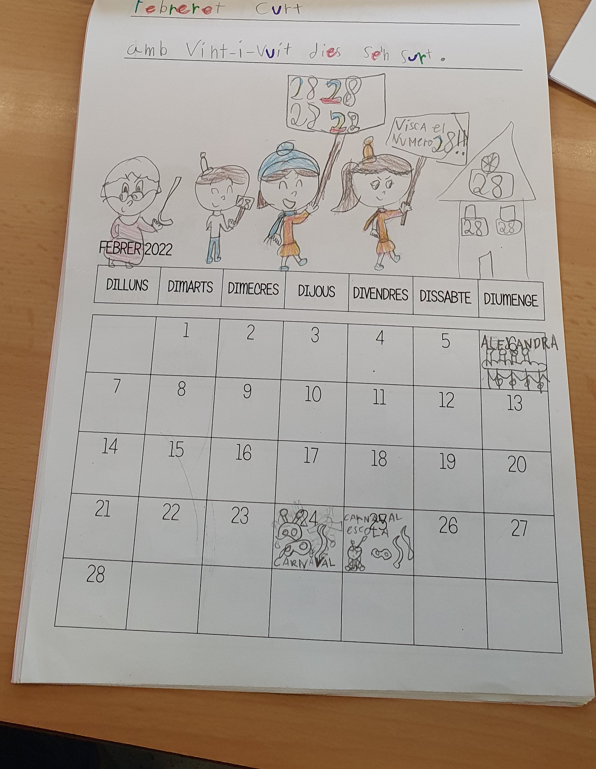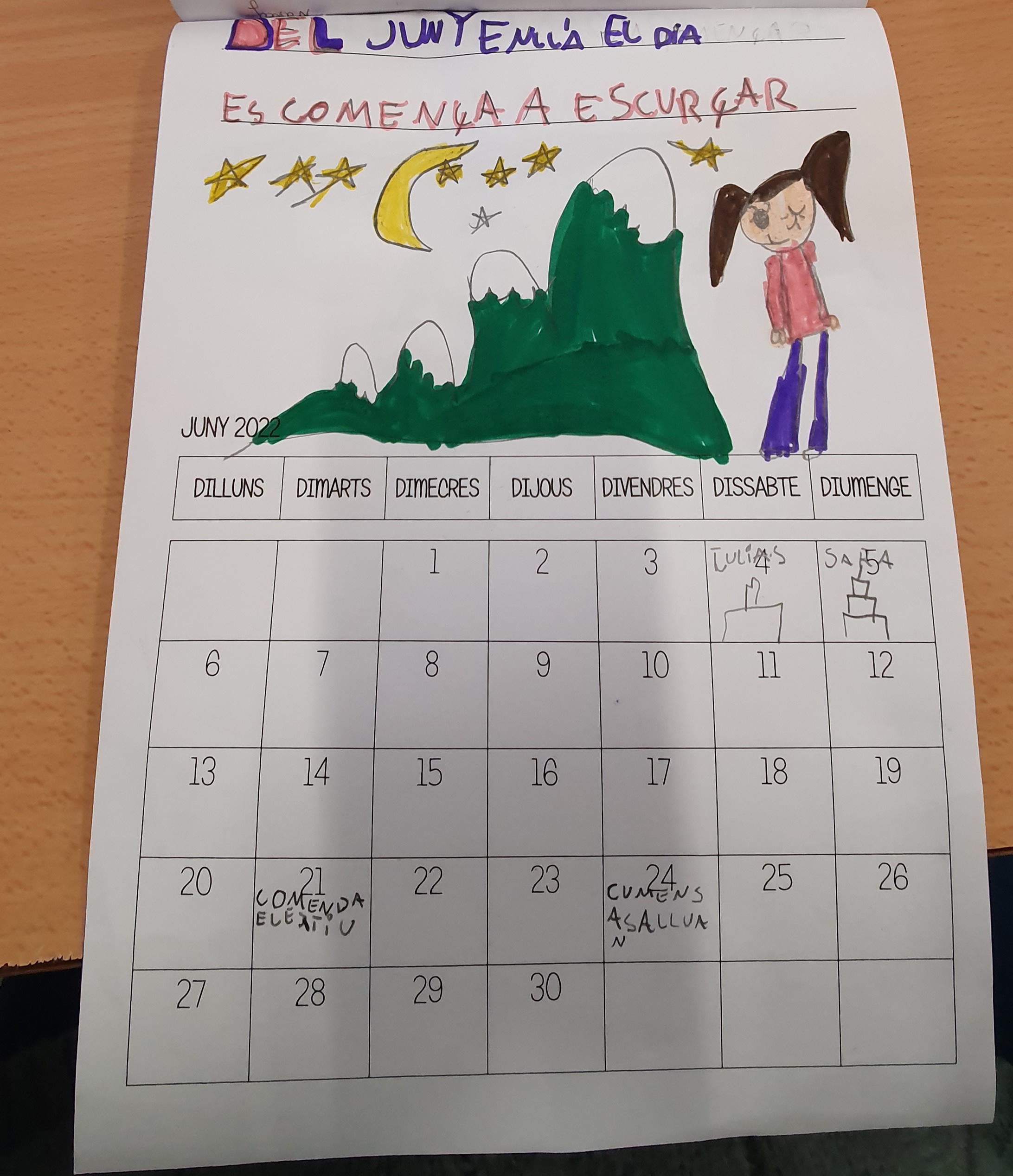 Com que a segon hem treballat les dites doncs hem escrit la dita de cada mes i també hem fet un dibuix sobre la dita. Hem apuntat els dies dels aniversaris dels nostres companys/es i el de la Pilar.