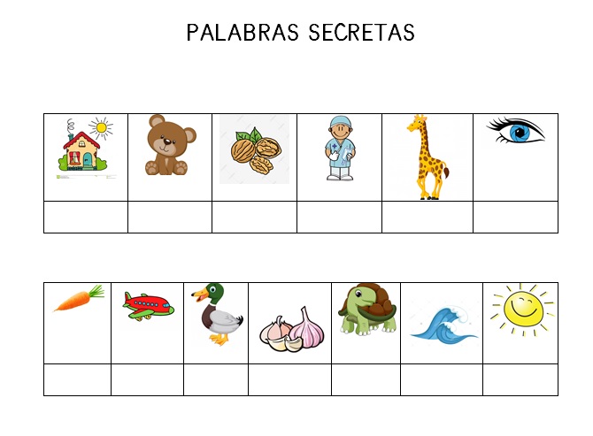 Escribe la letra inicial de cada dibujo y encuentra la palabra escondida.