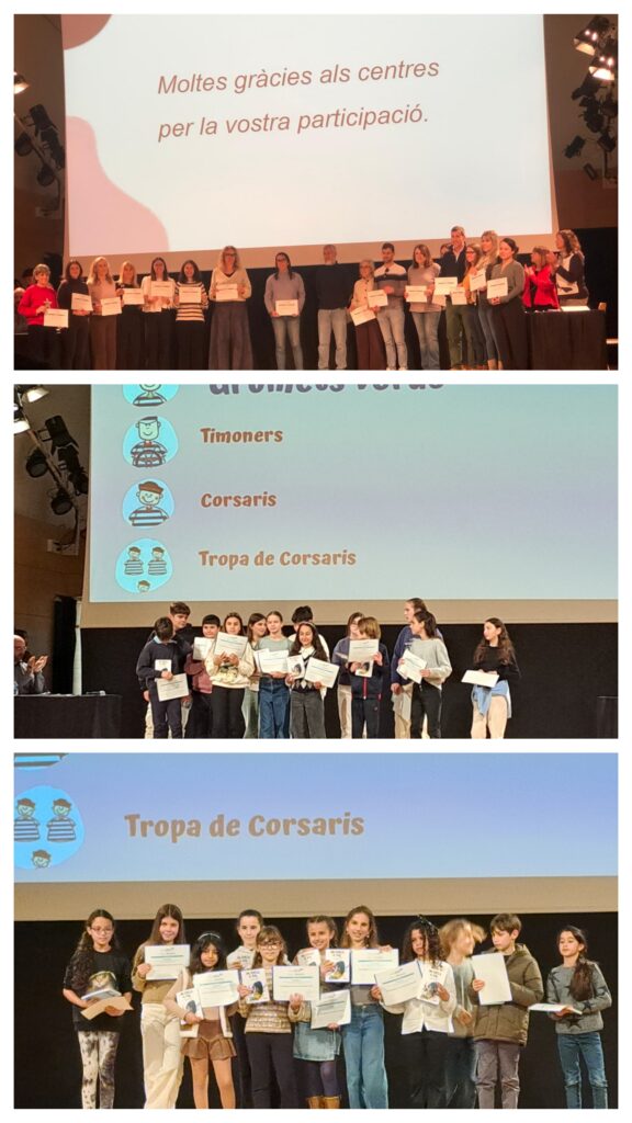 Les representants de la nostra escola han estat la Jana Mondéjar Ramos, de 4t (categoria de Grumets Vermells) i la Selma Beltran Pons, de 6è A (categoria de Grumets Verds). La Jana ha llegit un fragment del llibre Camil·la. La flauta màgica, de Gisela Pou, i la Selma ha llegit un fragment del llibre Wen i Long, de Lluís Prats.