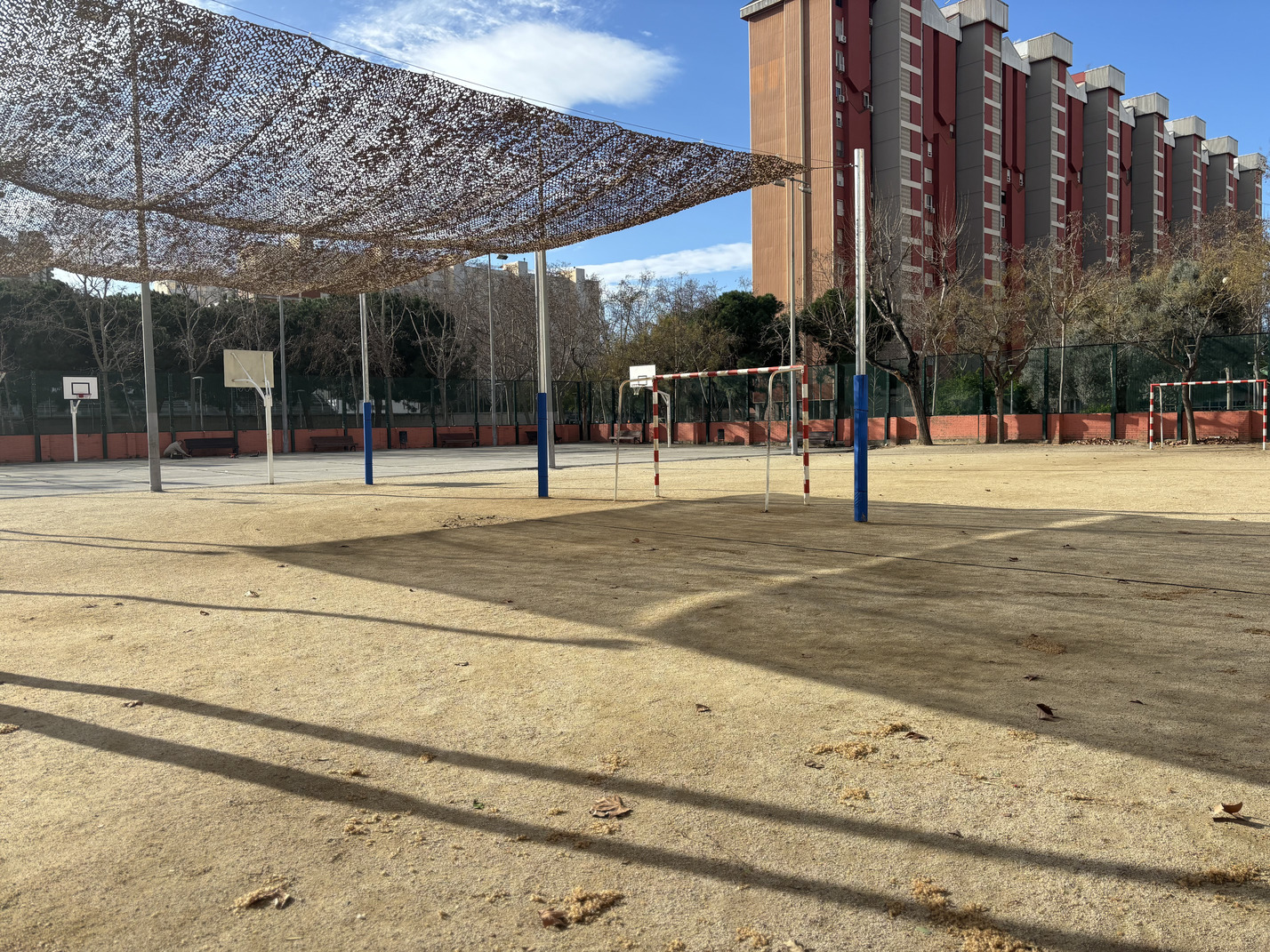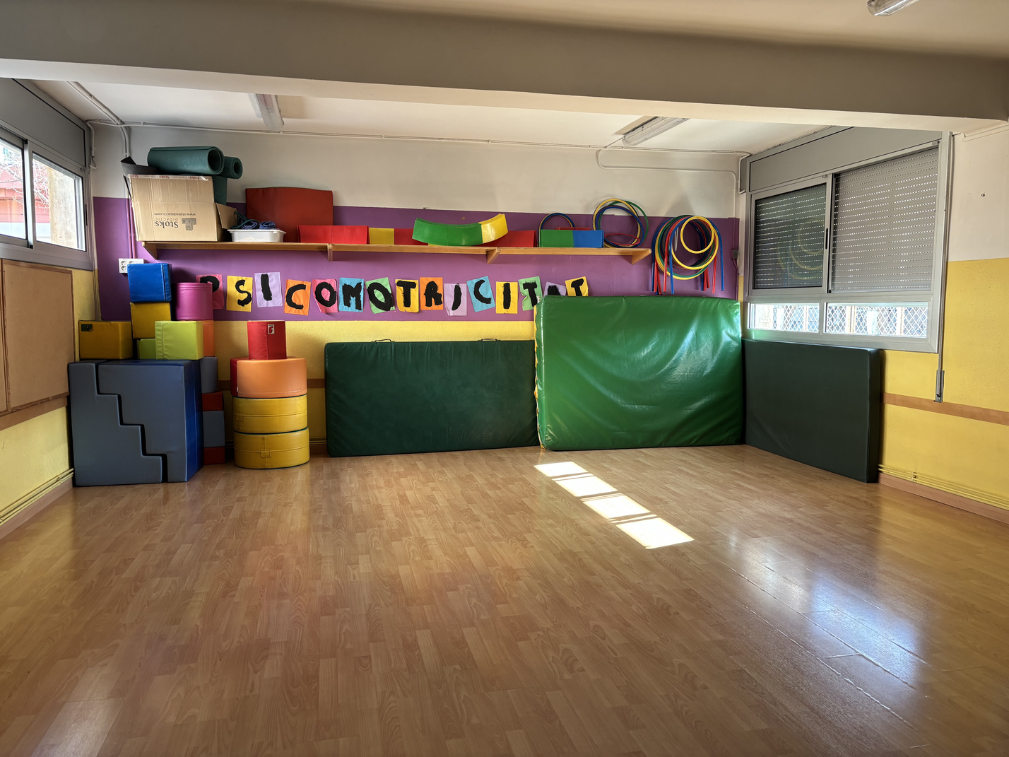 Pel que fa a espais de joc, en disposa de dos: un per infantil i un pati gran format per dues pistes, una de bàsquet i una de futbol. El centre disposa de servei de cuina i menjador.
