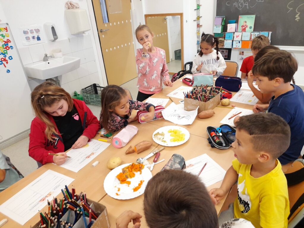 Per això vam poder observar ben de prop patates i moniatos, i els vam coure al microones embolicats amb paper film per després poder tastar-los. No em vam deixar ni rastre! Famílies, ja teniu un sopar ben senzill per fer aquests dies de tardor! 😉