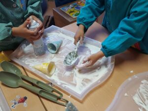 Durant les sessions d’experimentació els nens i nenes han pogut experimentar, descobrir, fer hipòtesis, crear i compartir les descobertes proposades.