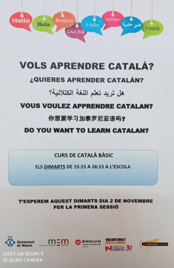 A l’escola i amb el suport del @mem_educatiu (Moviment Educatiu del Maresme) i l’Ajuntament de Mataró, s’oferiran uns tallers gratuïts per aprendre català!