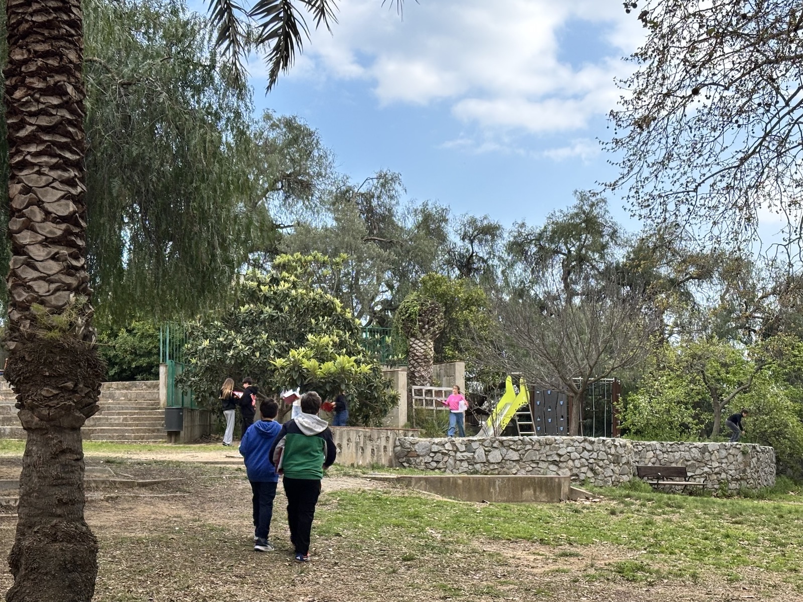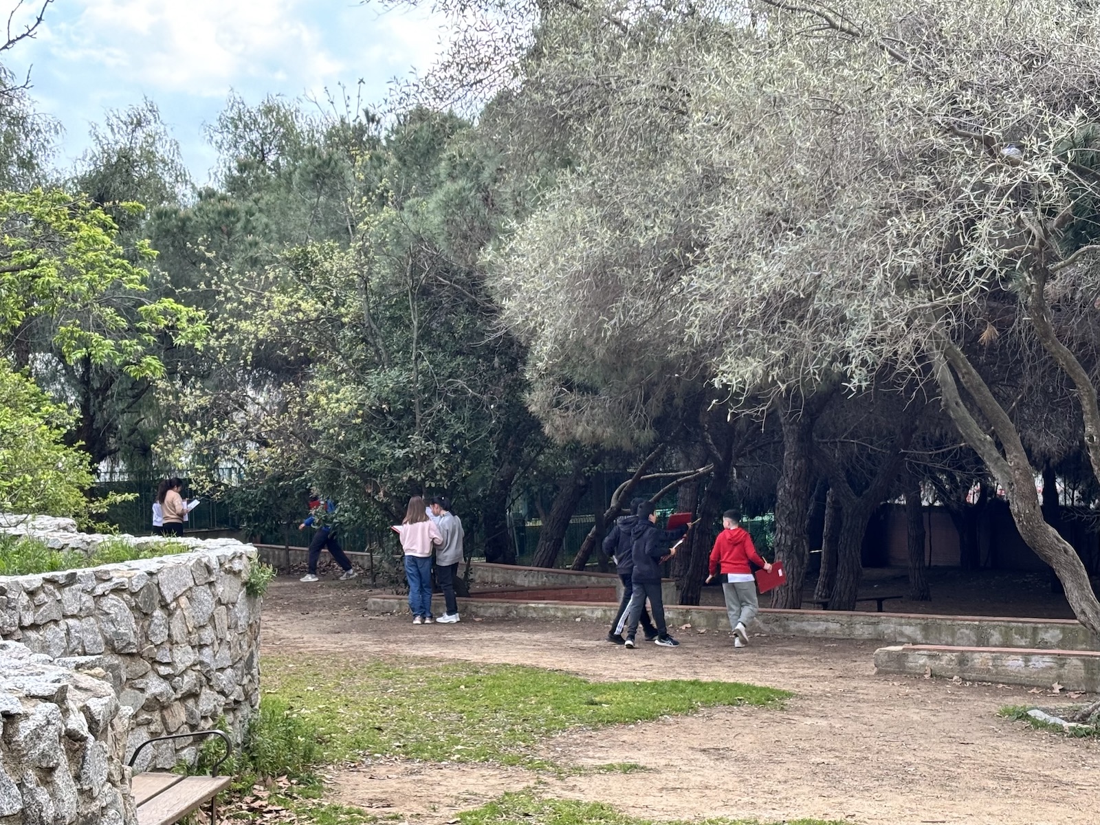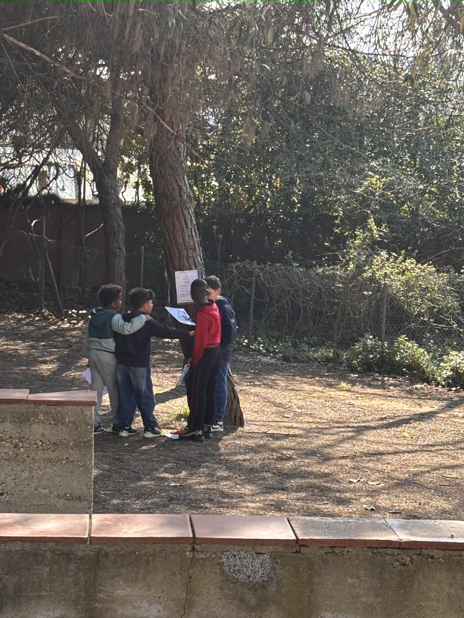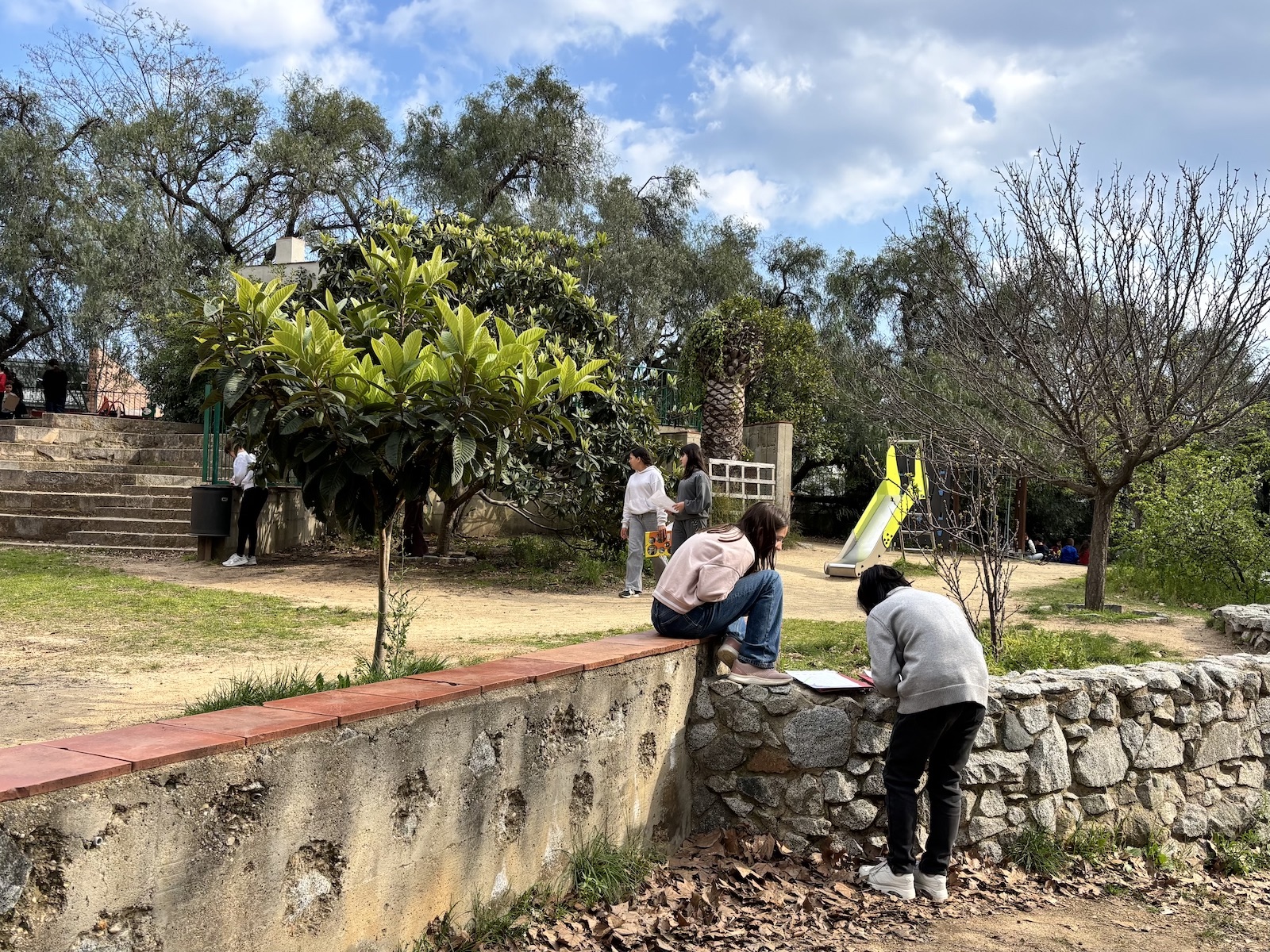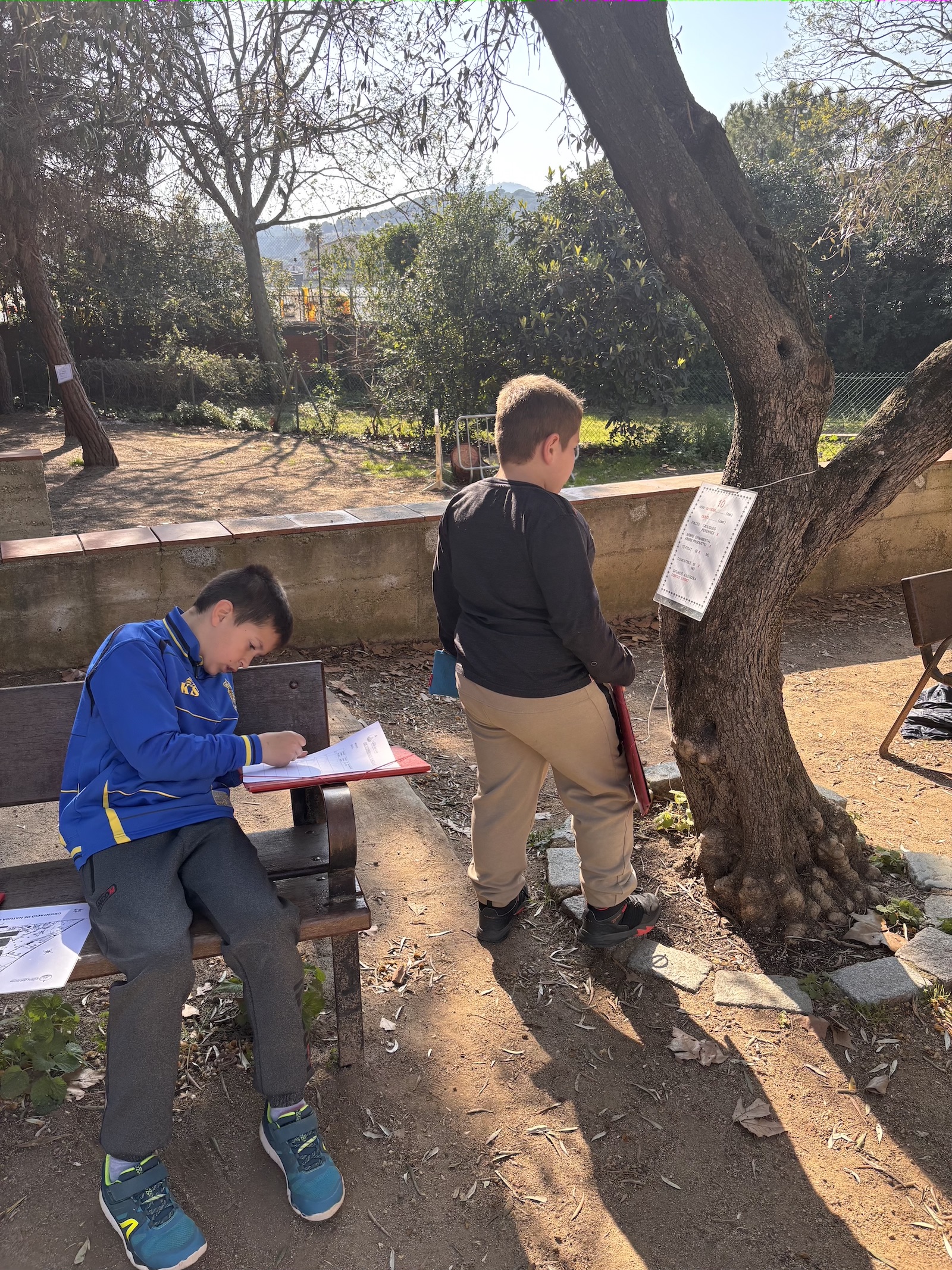 Aprofitant que és un espai molt gran i amb molta varietat d’arbres, es van col·locar diferents cartells que els alumnes havien de trobar per completar una fitxa. Així, han pogut observar, identificar i aprendre més sobre el nostre entorn proper.
