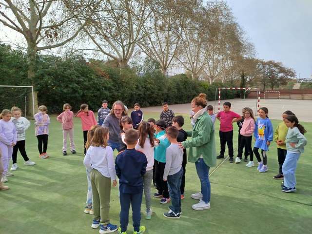 Després vam anar a la pista i entre totes i tots vam fer la pinya d’un castell.