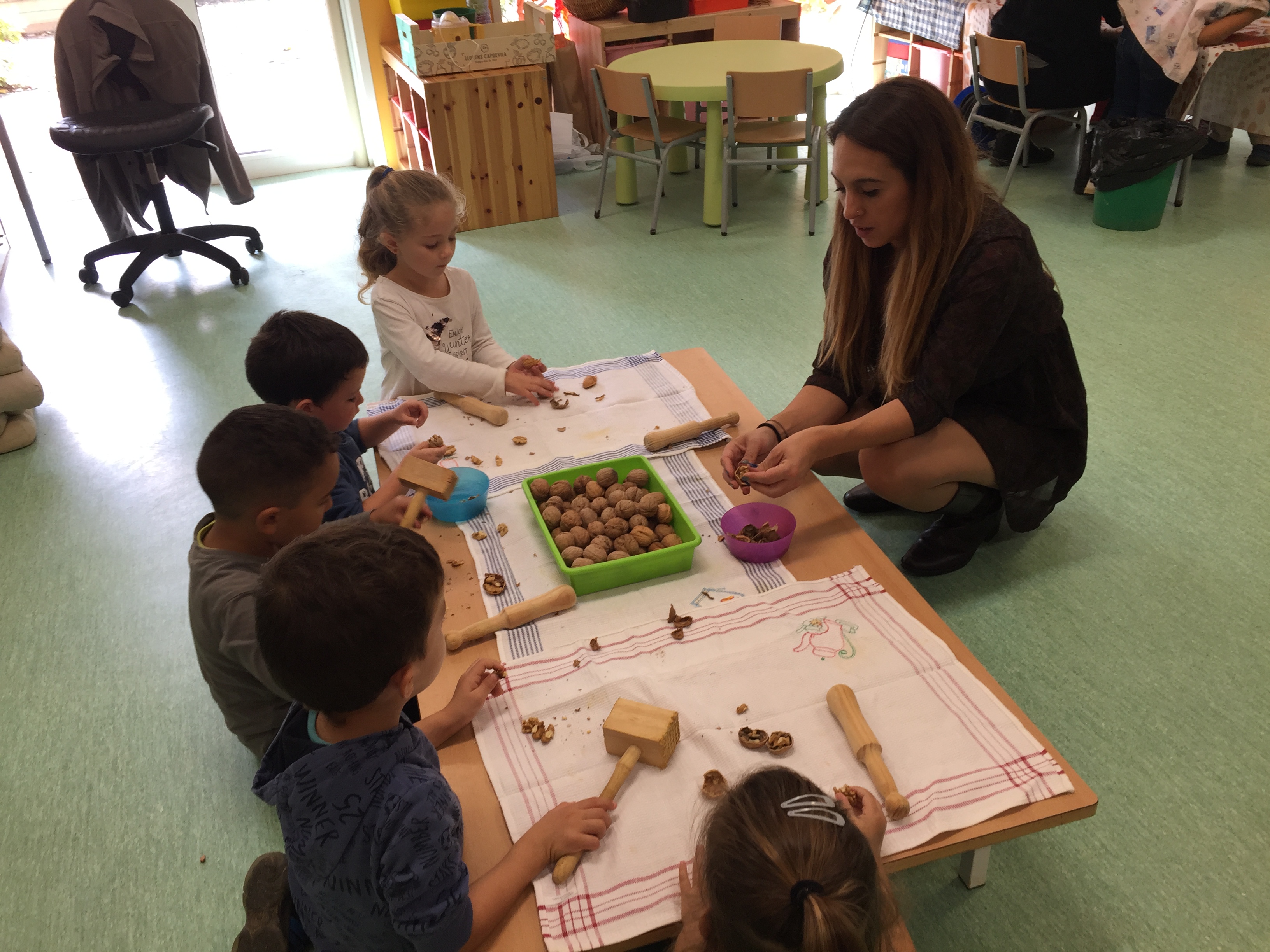 Aquest dimecres hem fet un tastet de fruits i fruites de la tardor. Hem trencat les nous, hem menjat pomes de diferents colors, hem tastat la magrana, hem menjat mandarines i raïm, i hem fet un suc de taronja boníssim.