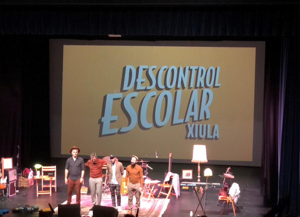 Avui hem anat al concert de Xiula al SAT. Primer hem anat a esmorzar a un parc que era molt xulo. Després hem anat al teatre i primer de tot ens han fet tancar els ulls i respirar. Han tocat moltes cançons, pantalles, pets, mirada estràbica i t’estimo bastant. Ha estat molt guai i han