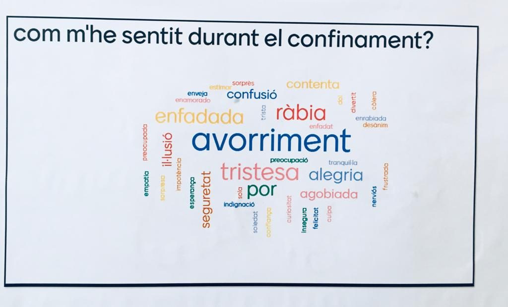 Cada classe ha realitzat una conversa o ha elaborat una activitat on cada infant ha pogut expressar com s’ha sentit durant el confinament, fent incís en les emocions i sensacions que ha viscut durant tot el procés del confinament.