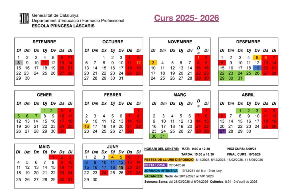 Calendari del curs