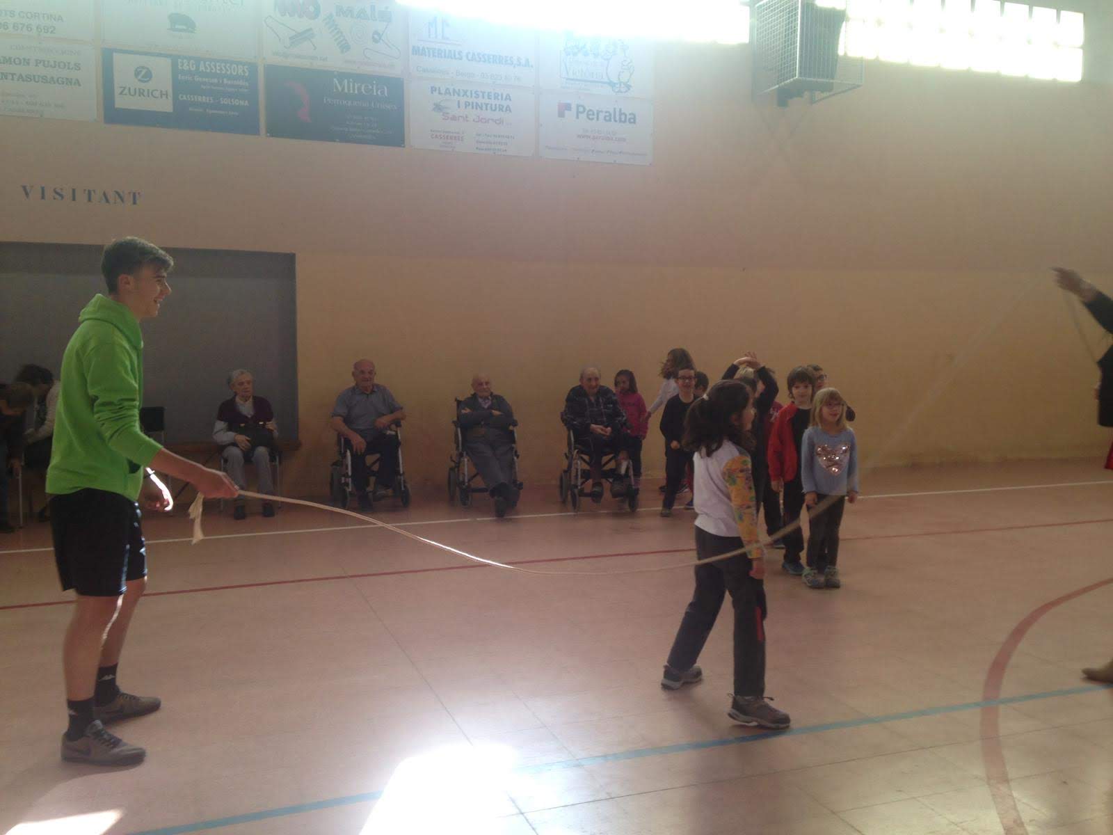 Aquest passat dilluns tota la colla de Cicle Inicial vam tornar a passar una tarda amb alguns avis i àvies de la Residència. Aquesta vegada vam compartir una tarda de jocs. Vam jugar a jocs d’abans i a jocs més actuals. Ens va agradar molt jugar a saltar a corda i intentar fer girar la baldufa!