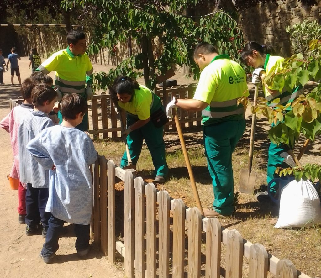 D’aquesta manera, s’aconsegueix apropar a l’alumnat a una experiència i situació laboral real. En aquest sentit l’escola organitza equips per a l’enjardinament d’altres escoles, particulars i empreses.