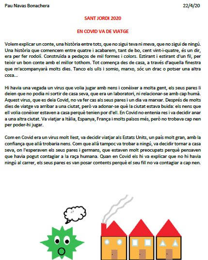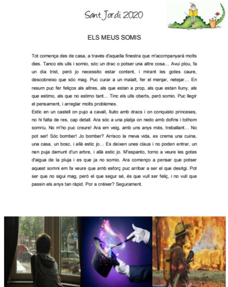 En aquest article volem que sigueu partíceps de les propostes guanyadores del Certamen del treball Literari de la Diada de Sant Jordi en l’edició excepcional del curs 2019-2020.