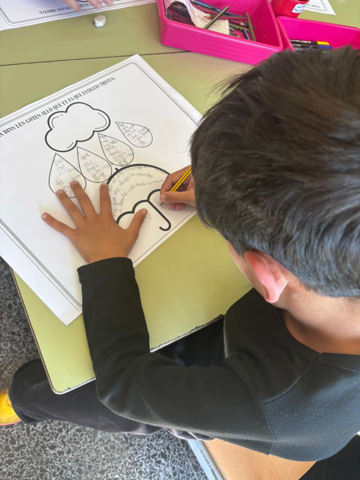 D’una banda, aquest any hem volgut focalitzar-nos en el treball de les emocions. Cada classe ha treballat una emoció específica a partir de la lectura d’un conte i de la realització de dinàmiques i activitats diverses. Hem treballat la calma, la vergonya, la por, la ràbia, l’assertivitat… A la classe d’I3 han practicat ioga i han creat la seva pròpia ampolla de la calma, a segon han pogut viure amb el seu propi cos el pes de les pors que de vegades ens envolten, a sisè han après a crear un escut per saber dir «no» d’una forma assertiva… Hem pogut explorar i aprendre moltíssim!