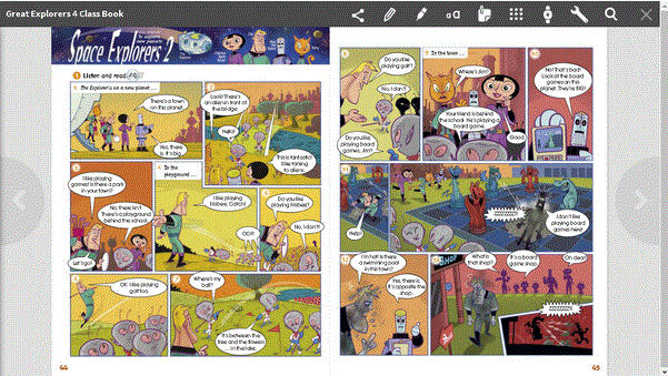 Escoltar i llegir la història de les pàgines 44 i 45 del Class Book. Així és com la veureu al llibre digital.
