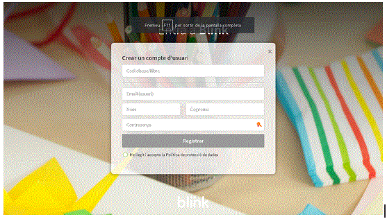 2- Enregistra’t a BLINK introduint el codi de la teva classe: