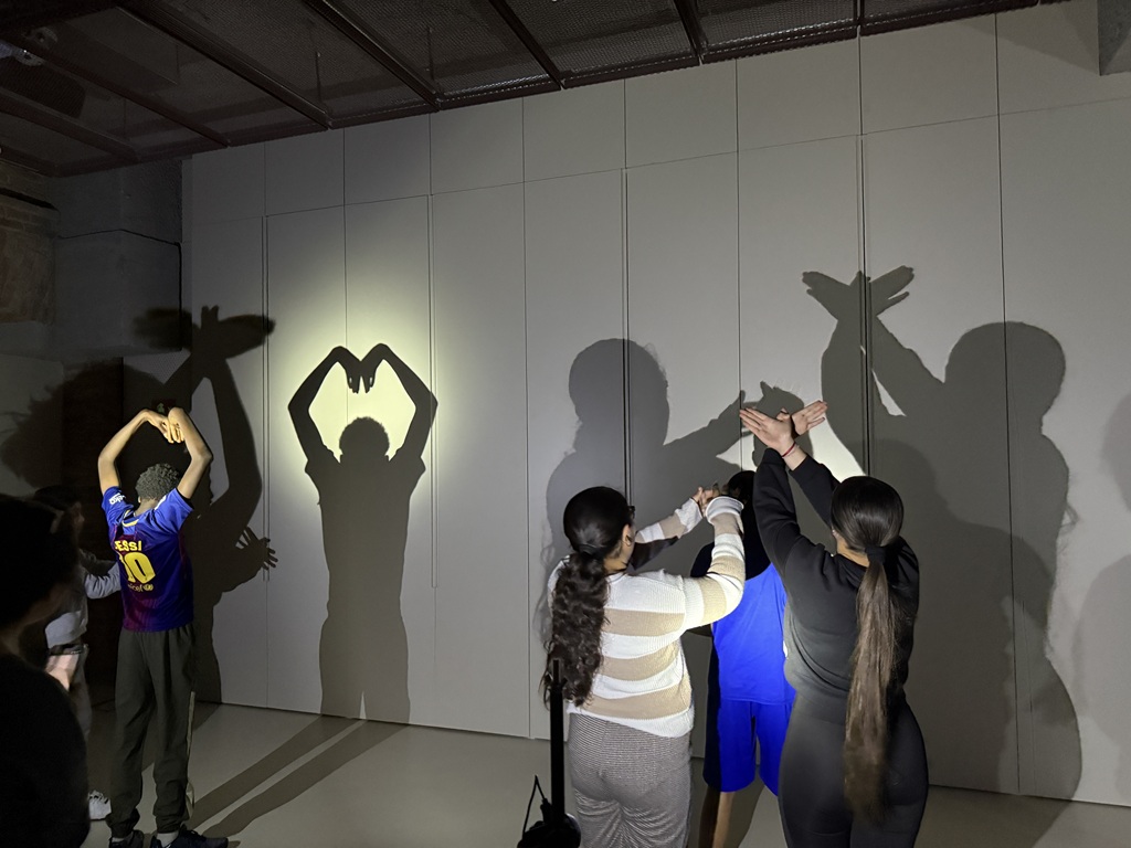 Primer vam participar en el taller “Juga amb els límits”, on vam reflexionar sobre com, a vegades, les limitacions poden donar lloc a noves formes de crear. A través de tres estacions, l’alumnat va experimentar amb diferents sentits: la vibració amb tambors, la visió i el tacte modelant formes amb fang, i la creació d’ombres amb el cos i la llum. Aquesta activitat els va permetre reflexionar sobre la importància d’una mirada inclusiva en l’art.