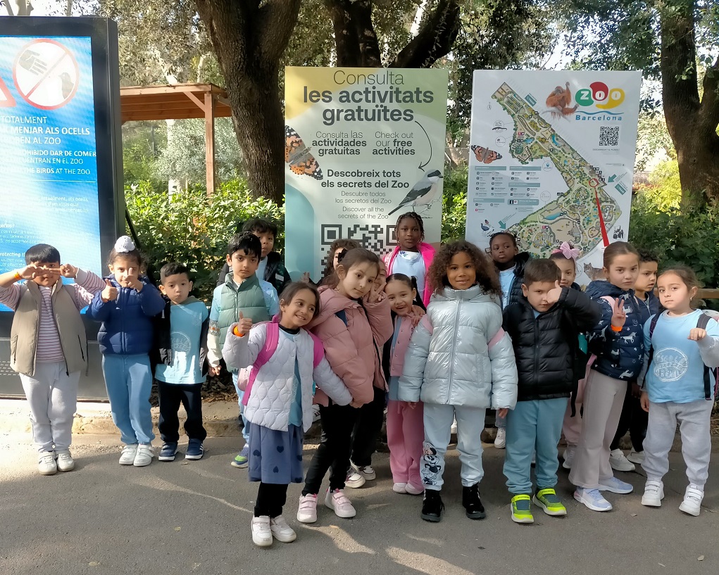 Els nens i nenes de la classe de Les cabretes hem visitat el zoo de Barcelona, on hem vist de més a prop les girafes, els lleons, els guacamais, entre d’altres. Després hem fet una activitat en què ens han explicat curiositats dels llops, espècie en perill d’extinció, i hem jugat a separar el menjar per categories, ja que per cuidar als animals cal saber què mengen.