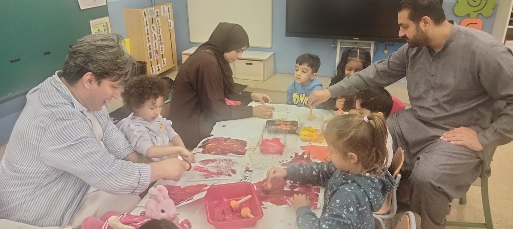 A la sessió de “Juguem amb famílies” ens hem trobat amb molt bona participació. Hem pintat, retallat, imaginat i expressat amb les diferents propostes i materials. Aquest espai ajuda els infants a desenvolupar la seva creativitat. Les persones adultes també poden gaudir d’un espai tranquil i de confiança per experimentar amb l’art i donar suport als seus fills i filles. Hem manipulat objectes de la natura com pals, pinyes i pedres, hem pintat amb els colors de la tardor, hem fet collage, ens hem relaxat pintant mandales i un gran mural compartit.