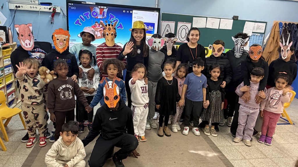Els alumnes de 4t han visitat l’aula d’I3 per explicar i dramatitzar el conte El Titó a la sabana. Una alumna feia de narradora, mentre la resta, amb màscares i a través de l’expressió corporal, representaven els diferents animals de la història.