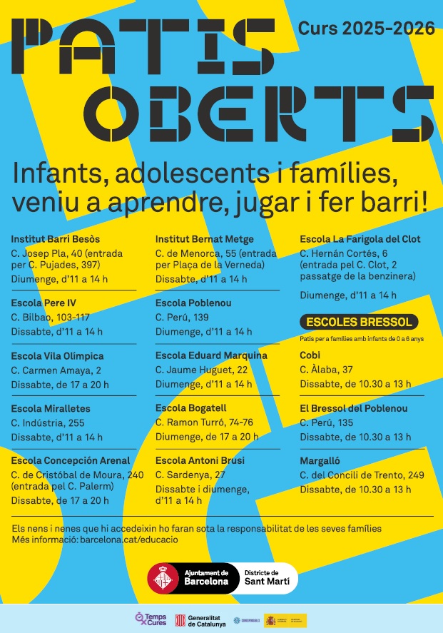 PATIS ESCOLARS OBERTS 2025-2026 Aquest curs, la nostra escola, continua formant part del projecte Patis escolars oberts al barri.