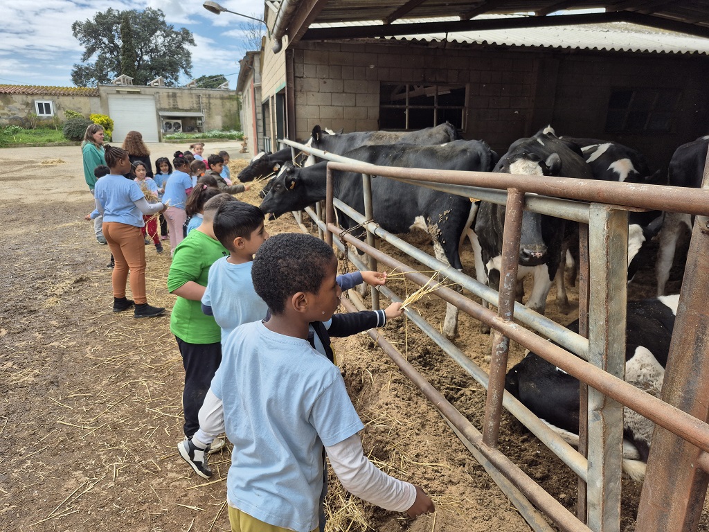 Hem pogut munyir una vaca de manera tradicional i ens ha agradat molt. Tot i que en aquesta granja tenen un sistema automàtic molt curiós per munyir les vaques. Hem visitat altres animals com l’ovella, la cabra el poni, les gallines i els porcs senglars.