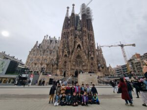 Avui, 13 de desembre, els guies turístics de 1r hem anat a la Sagrada Família. És un temple espectacular i ens hem quedat ben bocabadats quan l’hem vist. Hem tingut la sort de poder fer una visita per l’interior amb una guia, la Marina. Ens ha repartit uns fragments d’imatges d’algunes de les parts de la basílica que havíem d’anar trobant. Ens hem posat els nostres binocles imaginaris per no perdre detall i hem trobat: fruites, animals, fulles, columnes que semblaven troncs d’arbres i un munt de noms en vitralls plens de colors.