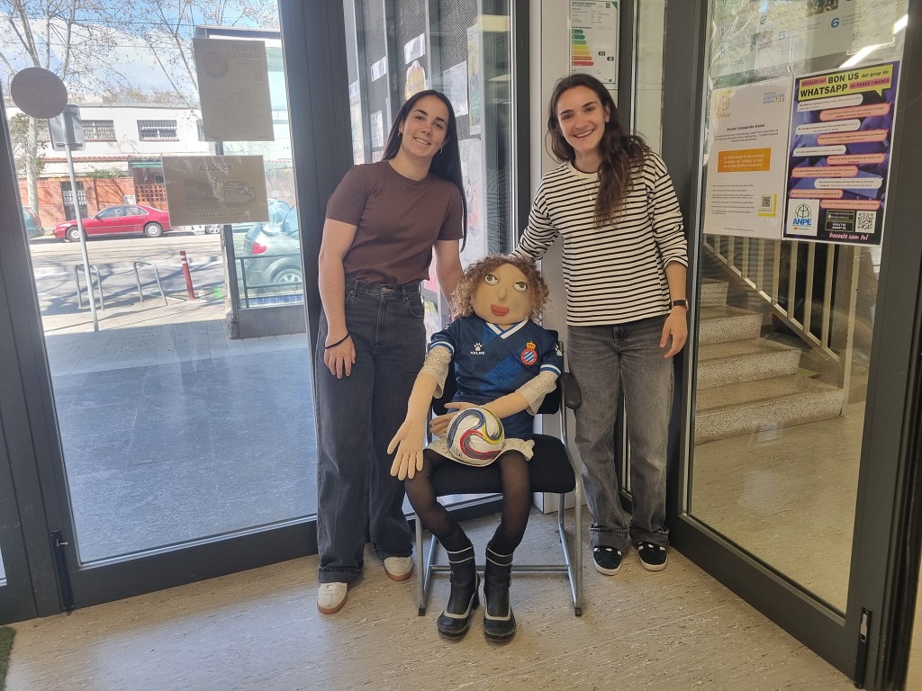Durant el mes de març commemorem el dia de la dona treballadora i avui ens han visitat dues jugadores del 1r equip de futbol femení del RCD Espanyol: l’Ainoa Campo, la capitana i l’Amaia Martínez, que juga de central. Ens ha parlat dels seus inicis, a quin equip van començar, a quins equips han jugat i com se senten a Barcelona i a l’Espanyol. També ens han parlat de quin és el seu somni, els seus referents, les seves pel·lícules preferides… contestant a totes les preguntes que els hi hem fet.