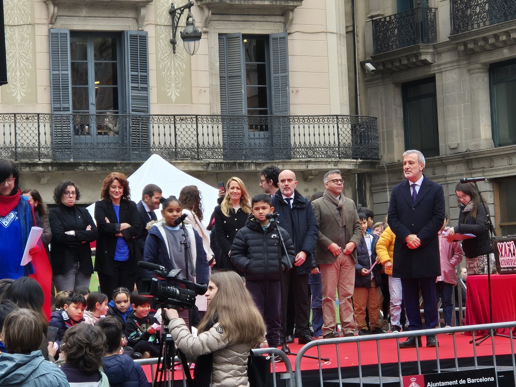 El passat 12 de febrer, els alumnes de 3r vam anar a la Plaça Sant Jaume a celebrar l’inici de les festes de Santa Eulàlia amb l’acte de lectura del Pregó dels Infants. Primer vam veure la penjada del penó al balcó de l’Ajuntament amb la Guàrdia Urbana de gala i el ball de la gegantona Laia. Després els nostres representants van anar a buscar l’alcalde de Barcelona i, a l’escenari, van llegir l’estrofa que vam preparar a l’aula. Per acabar, vam gaudir de l’espectacle de música i màgia de l’artista Xaxi Xixarrus. Va ser un dia molt emocionant!