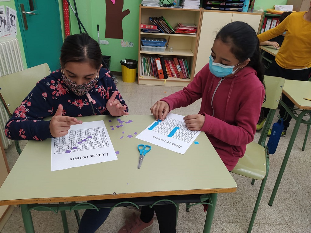 Els nois i noies de CSN aquesta setmana hem après els múltiples. Vam jugar a un joc que es deia “Competició de múltiples” havíem de fer parelles, i la mestra va donar a cadascú una taula amb números de l’1 al 100. Cada persona tenia unes fitxes fetes de cartolina.  Després havíem d’agafar un paper en el que posava un número del 2 al 10. Per exemple: a mi em toca el número 3 i al meu company el 6. Doncs cadascú havia d’assenyalar el múltiple del seu número amb la fitxa, si t’equivoques perds el teu torn però, si ho fas bé, tens un punt. I així el que tingui més punts guanya.