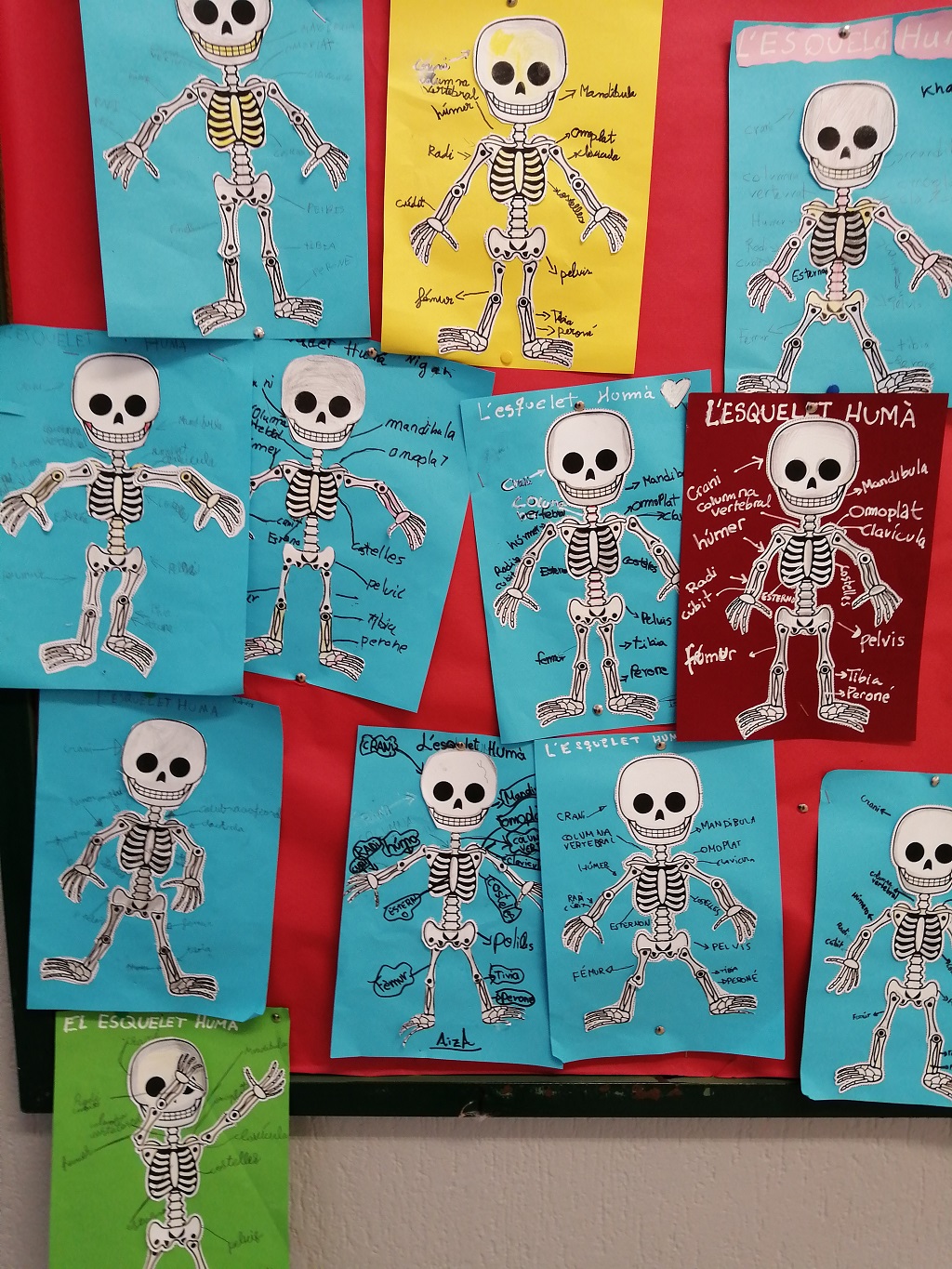 La classe dels pingüins fantàrtics hem treballat els ossos i els músculs. Hem fet un esquelet i hem posat el nom dels ossos: crani, costelles, columna vertebral, pelvis, tíbia i peroné, clavícula, fèmur , húmer, cúbit i radi.