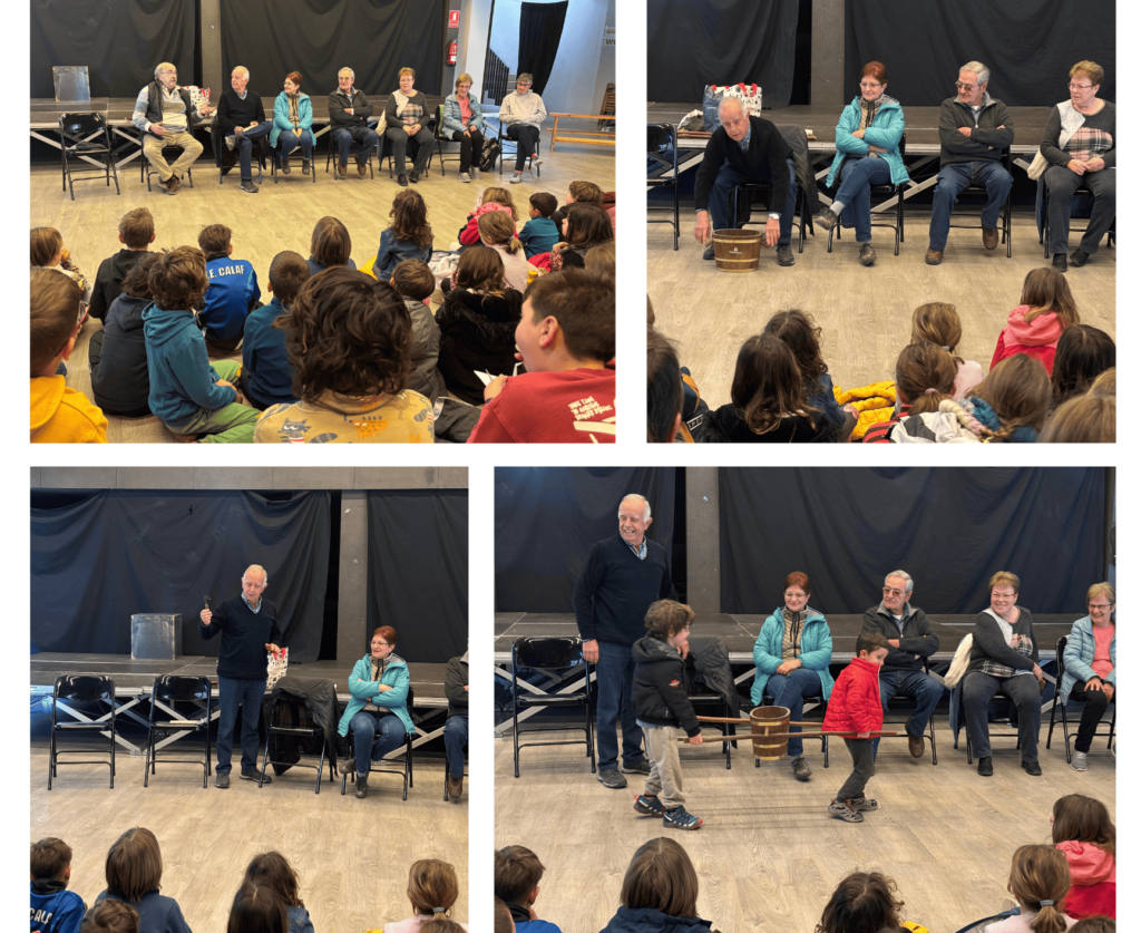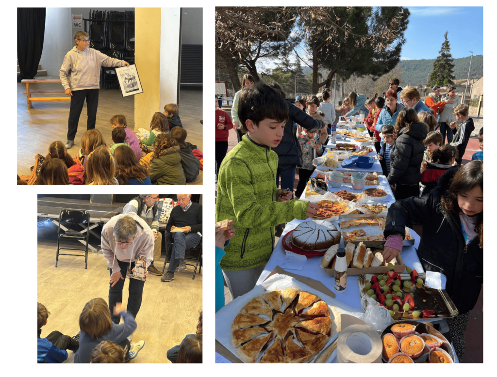 Un cop acabada la trobada, hem compartit un esmorzar conjunt amb els més grans i els més petits del poble.