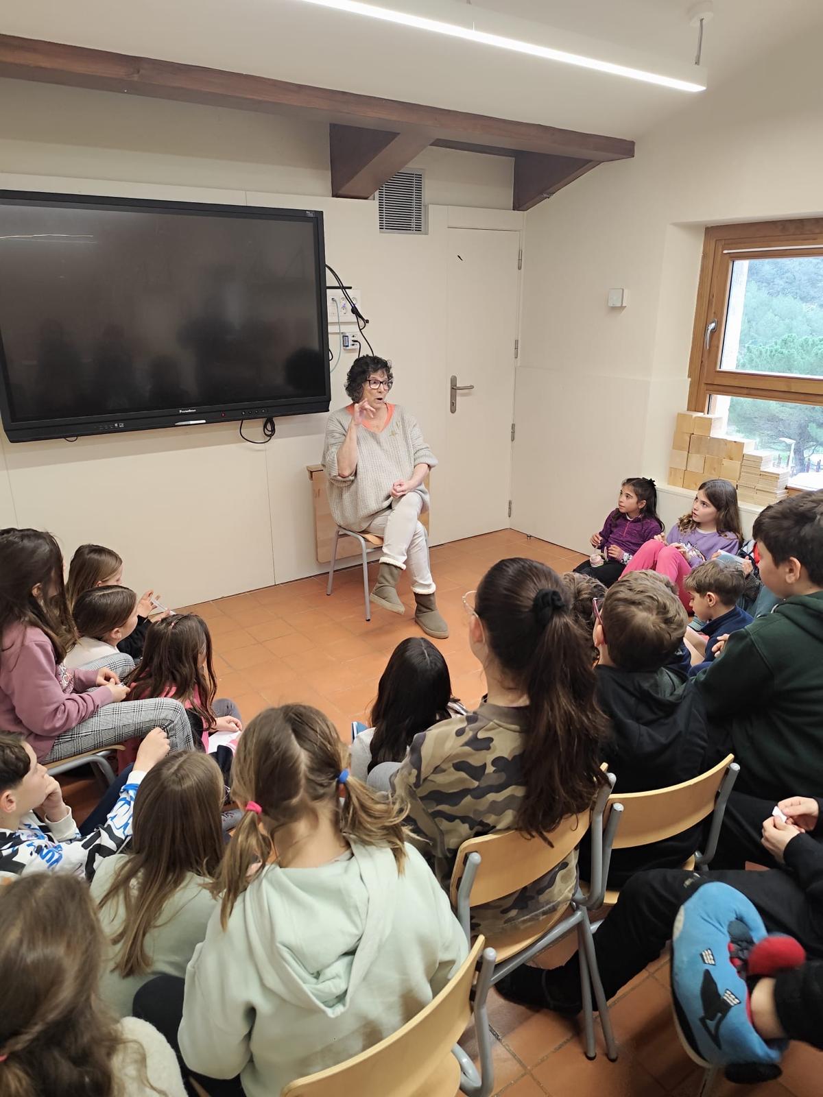 Quan va venir l’Anna Fité nosaltres li vam fer moltes preguntes i ens les va respondre totes, a baix va llegir algun conte i també tenia titelles.