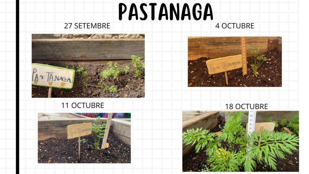 El dia 4 de octubre les pastanaga feia 11cm,les col kale 8cm i l’enciam roure 5cm.