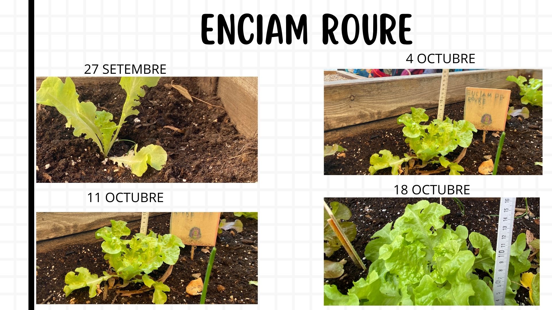Els grans estem fent el control del creixement de l’hort i us volem explicar com està creixent.